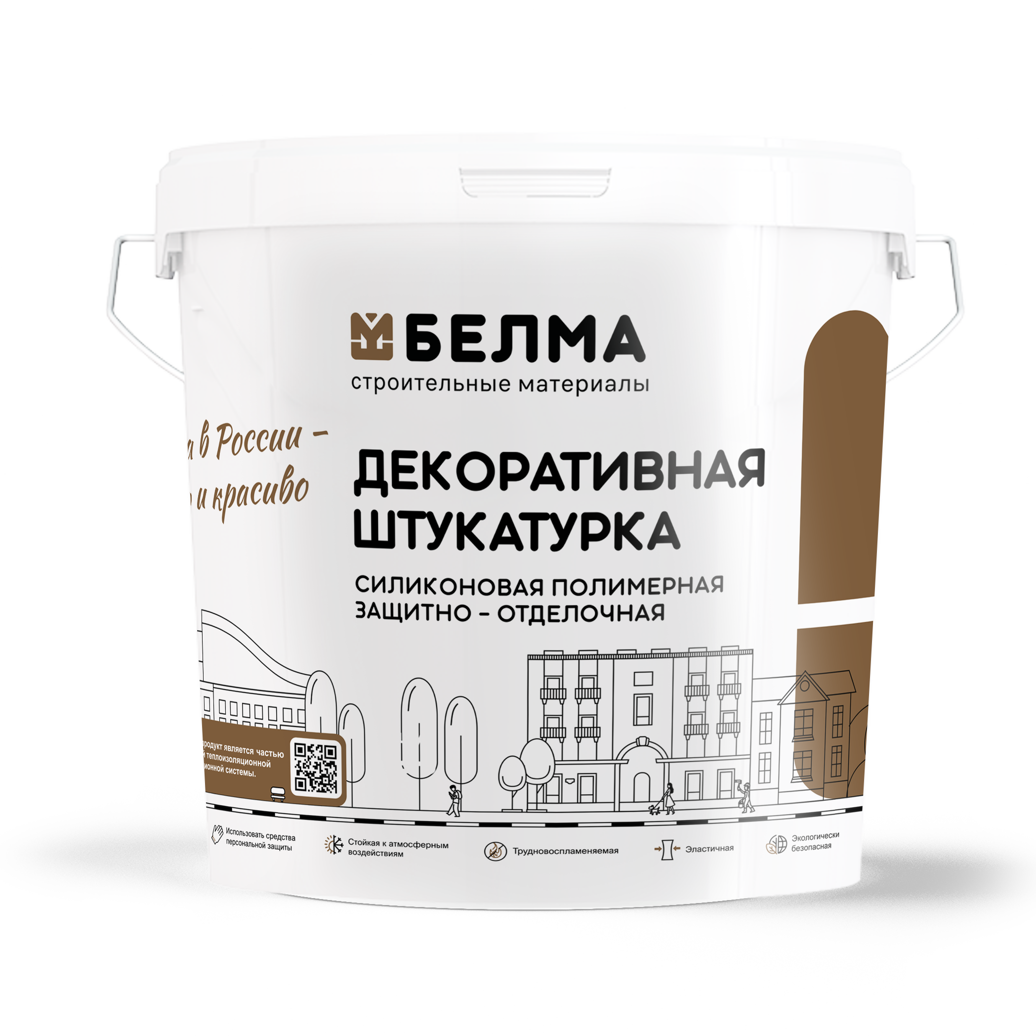 Декоративная штукатурка готова к применению. Экологически и пожаробезопасна. Особая композиция минеральных наполнителей создаёт фактуру - «Шуба». Благодаря составу и свойствам декоративное штукатурное покрытие имеет высокие эксплуатационные характеристики: паропроницаемость, легкость нанесения, стойкость к атмосферным воздействиям, к УФ лучам, к грибкам и плесени, долговечность, водонепроницаемость.