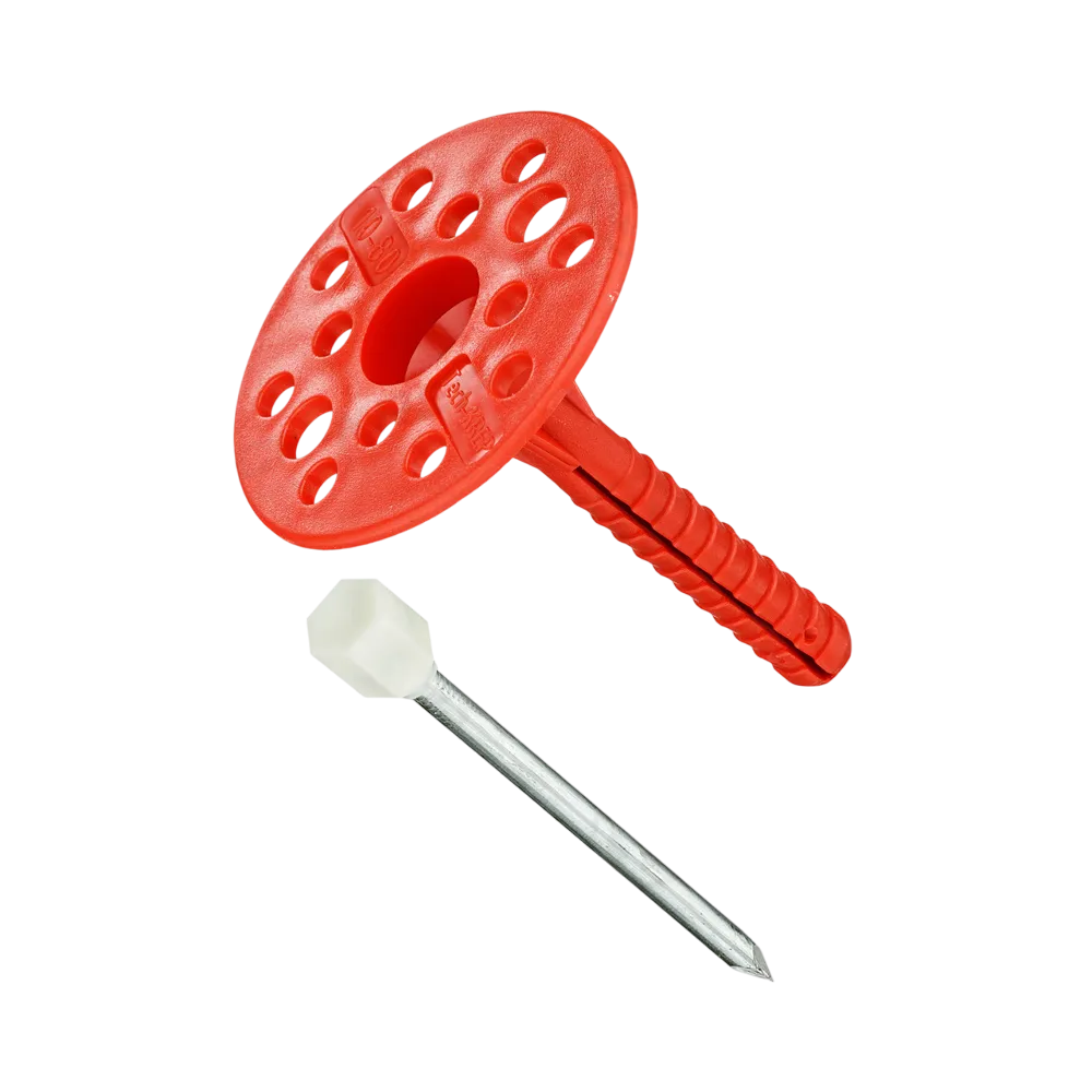 Особенности: увеличенная распорная зона (10 см) дает возможность устанавливать дюбель в пустотелых материалах. Специальные насечки, шипы и зубцы с обратной направленностью на стержне обеспечивают повышенную прочность на вырыв и срез. Повышенная прочность за счет усиленных ребер жесткости в месте соединения шляпки и стержня. Плотное и надежное крепление теплоизоляционных материалов благодаря диаметру шляпки — 60 мм. Гвоздь, выполненный из углеродистой стали, позволяет выдерживать высокие нагрузки на вырыв из основания. Термоголовка гвоздя обеспечивает терморазрыв между фасадной частью конструкции и внешней средой. Это необходимо при возведении штукатурных фасадов, чтобы защитить от возникновения конденсата из-за перепада температур и последующего разрушения штукатурного слоя. Установка производится методом сквозного монтажа. В среднем на 1 кв. м площади теплоизоляции применяется 5-8 дюбелей.