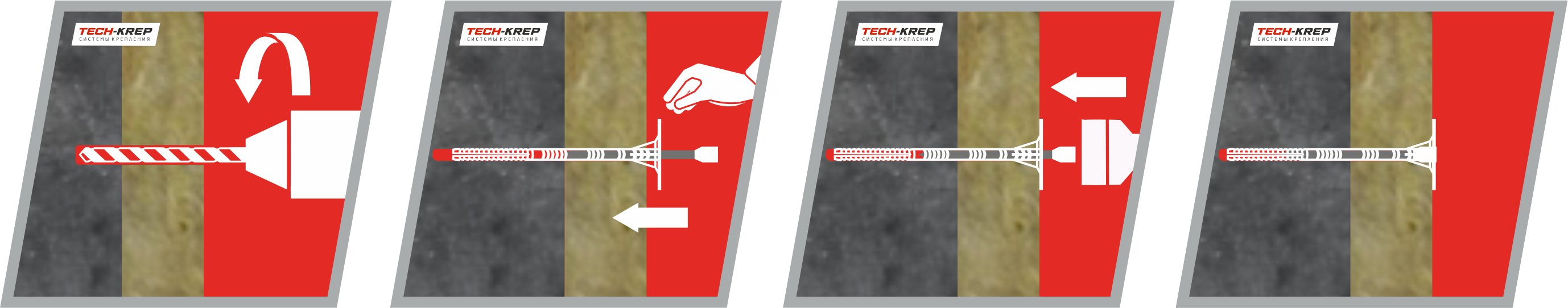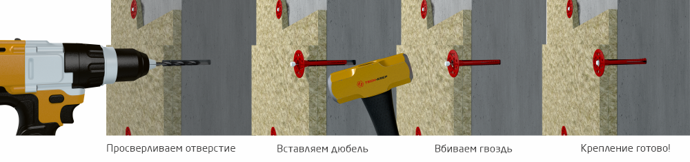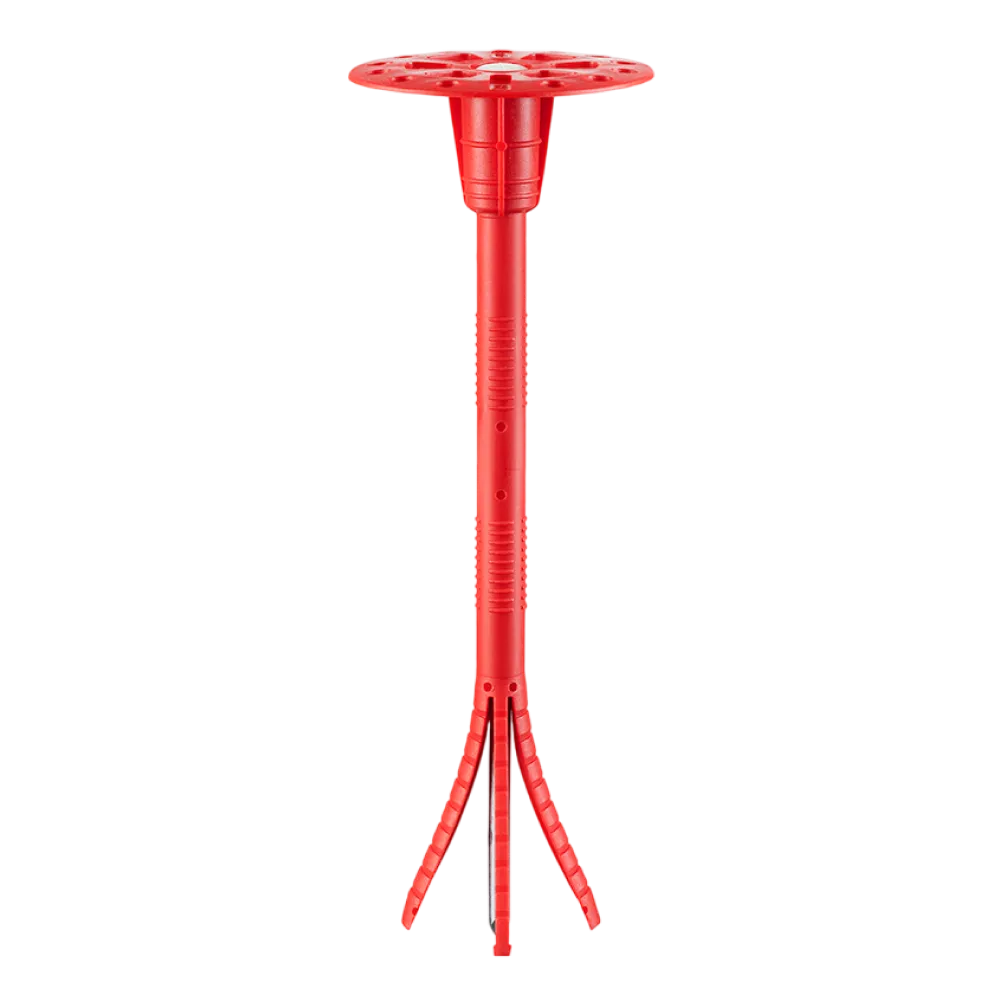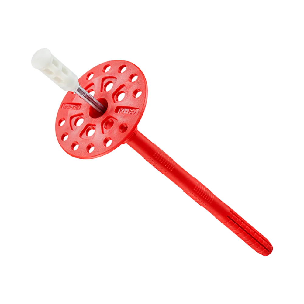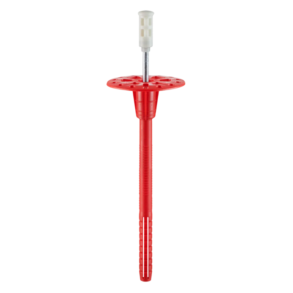 Особенности: наличие термоголовы на шляпке гвоздя защищает штукатурные фасады от возникновения конденсата, из-за перепада температур и последующего их разрушения от воздействия влаги. Увеличенная термоголова (30 мм) уменьшает мостики холода, предотвращая теплопотери в местах крепления. 4-х сегментная распорная зона гарантирует стабильно высокие нагрузки в различных материалах основания. Обеспечивает показатель нагрузки не ниже класса СК0, даже при бурении ударным методом. Идеально подходит для крепления в пустотелых материалах. В среднем на 1 кв. м площади теплоизоляции применяется 5-6 дюбелей.