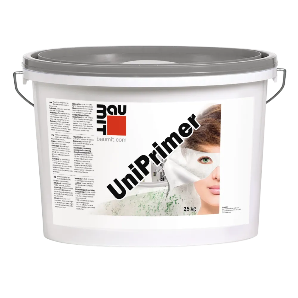 - Универсальная грунтовка для наружных и внутренних работ, предназначенная для последующего нанесения финишных декоративных штукатурок и красок Baumit. (см. технические спецификации соответствующих продуктов)