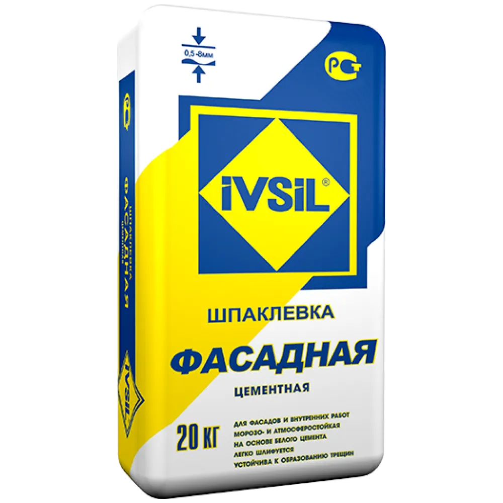 Цементная шпаклевка IVSIL ФАСАДНАЯ изготовлена на основе импортного белого цемента с минеральным наполнителем и комплексом полимерных добавок.