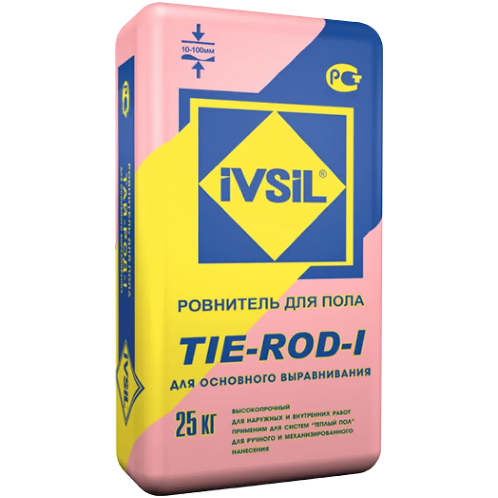 IVSIL TIE-ROD-I (ИВСИЛ ТАЙ-РОД-1) — это высококачественный ровнитель для пола, изготовленный на основе цемента, фракционированного песка, минеральных наполнителей и полимерных добавок. Он предназначен для основного выравнивания поверхностей пола толщиной до 100 мм и создания ровных оснований на стяжках из цементно-песчаных растворов и бетонов под последующие декоративные покрытия.