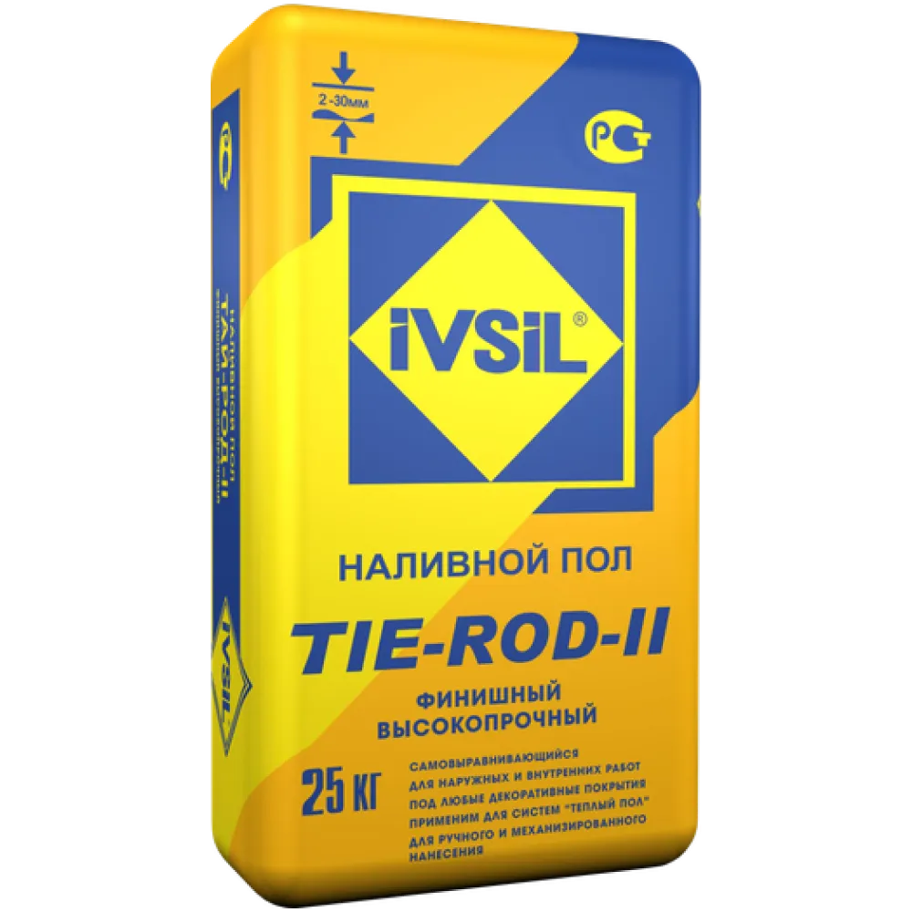 Финишный наливной пол IVSIL TIE-ROD-II изготавливается из высококачественного цемента, фракционированного песка с применением минеральных наполнителей и полимерных добавок. Он предназначен для создания идеально ровной и прочной поверхности, которая может служить основой для различных декоративных покрытий.