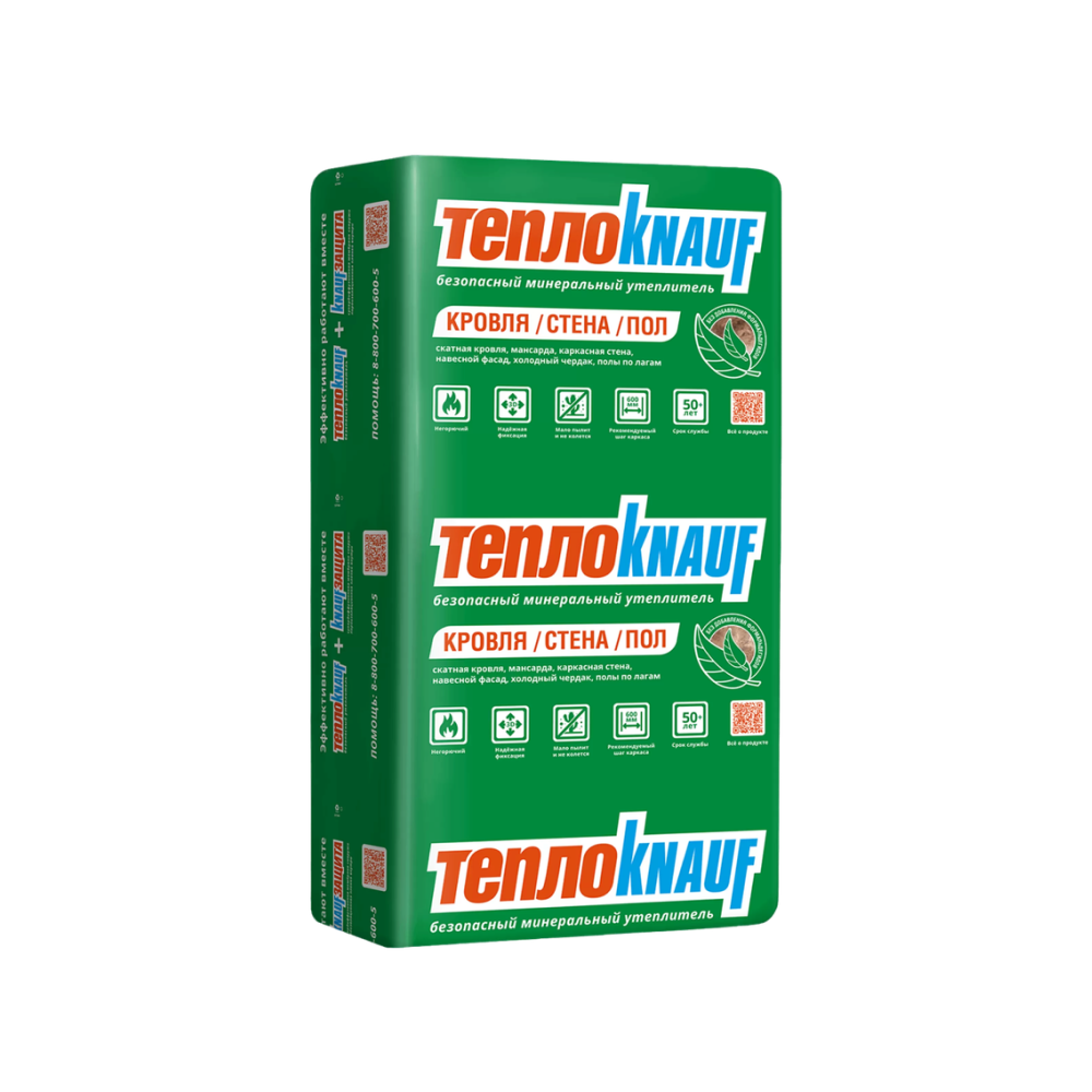 Минеральный утеплитель ТеплоKNAUF Кровля/Стена/Пол разработан для эффективной теплоизоляции всех типов строительных конструкций с ненагружаемым теплоизолирующим слоем.
