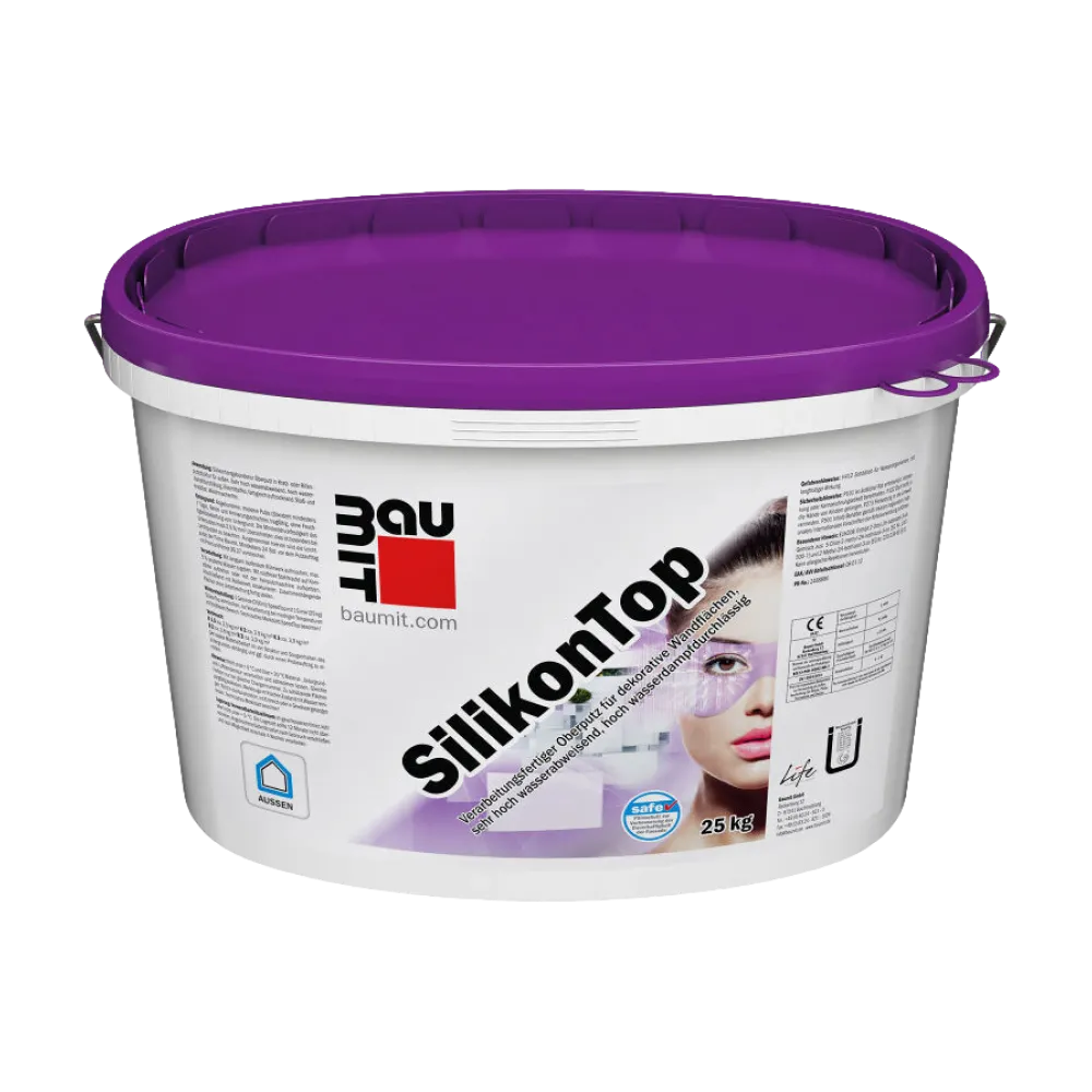 Декоративная штукатурка для применения в составе фасадных теплоизоляционных композиционных систем с наружными штукатурными слоями (СФТК), для нанесения на старые и новые минеральные штукатурки, а также на шпаклевки и бетон, подходит для санации.