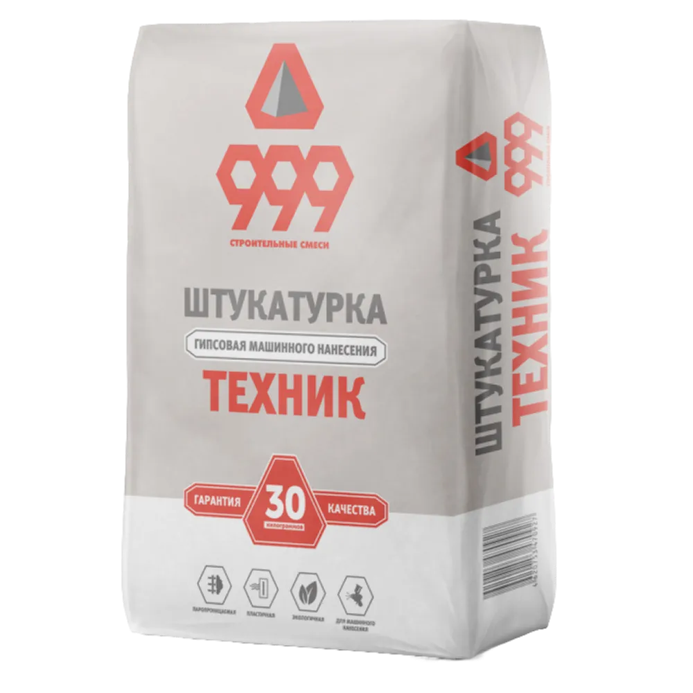 Мешки с сухой штукатурной смесью «999 Техник» хранить на деревянных поддонах в сухих помещениях. Смесь из поврежденных мешков пересыпать в целые мешки и использовать в первую очередь. Гарантийный срок хранения в неповрежденной упаковке — 6 месяцев.