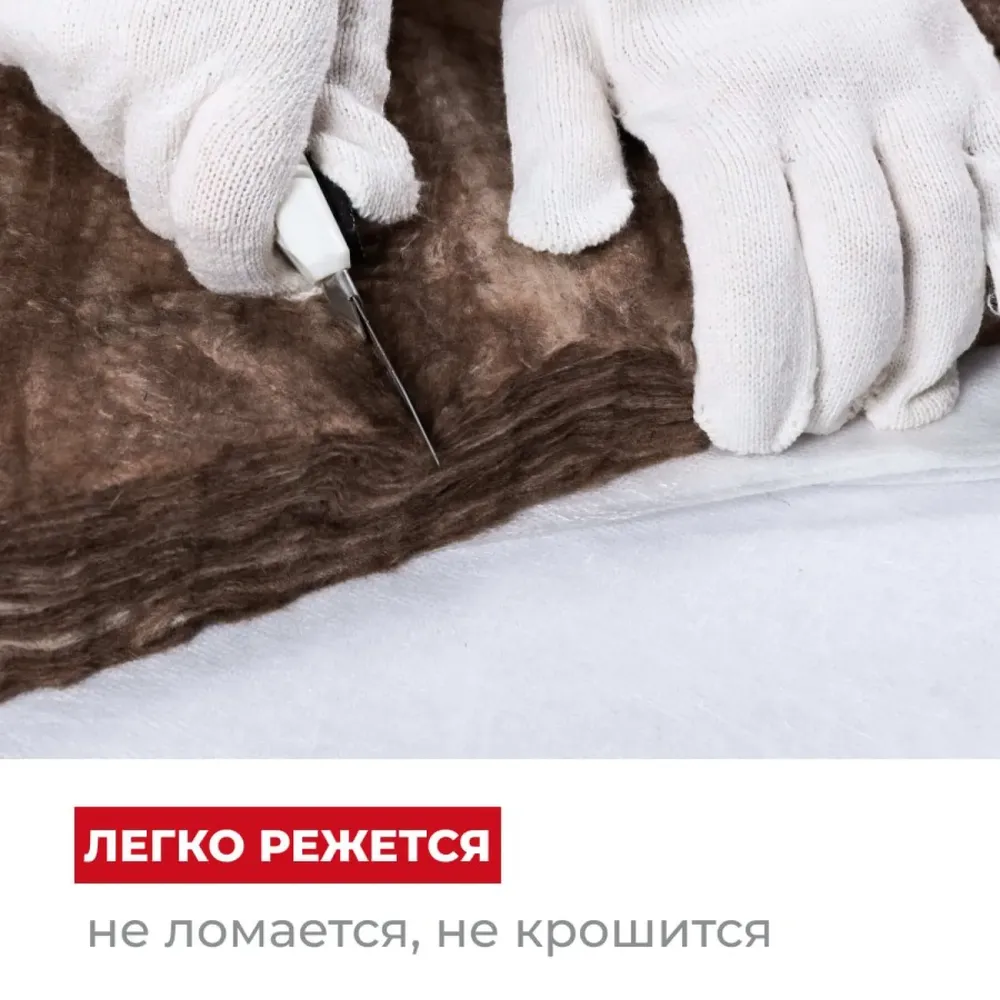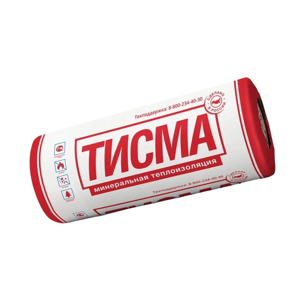 Изоляция ТИСМА толщиной 50 мм обеспечивает низкую теплопроводность. Материал относится к группе негорючих продуктов, не распространяет пыль и, благодаря специальной пропитке, устойчив к намоканию.